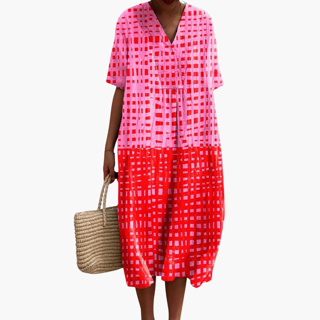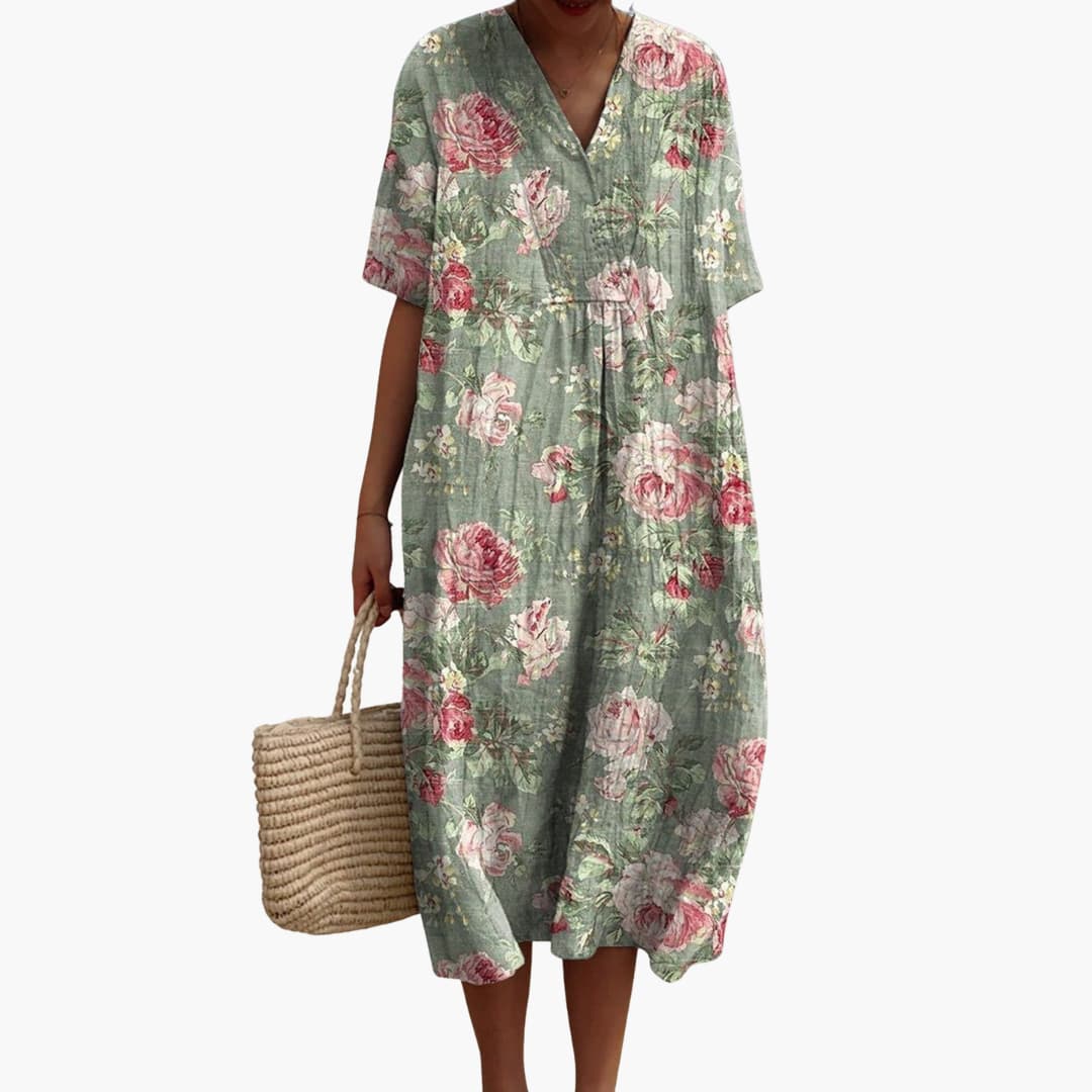 Women’s short sleeve summer midi dress with V-neck