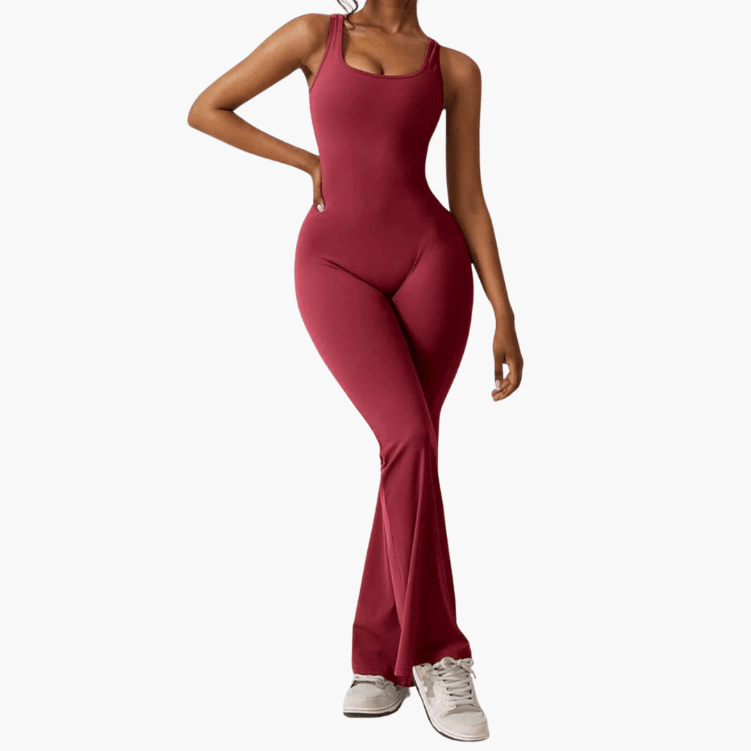 Women’s sleeveless jumpsuit with scoop neck and flared legs