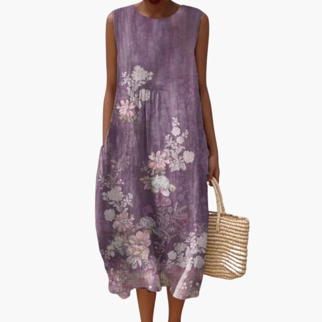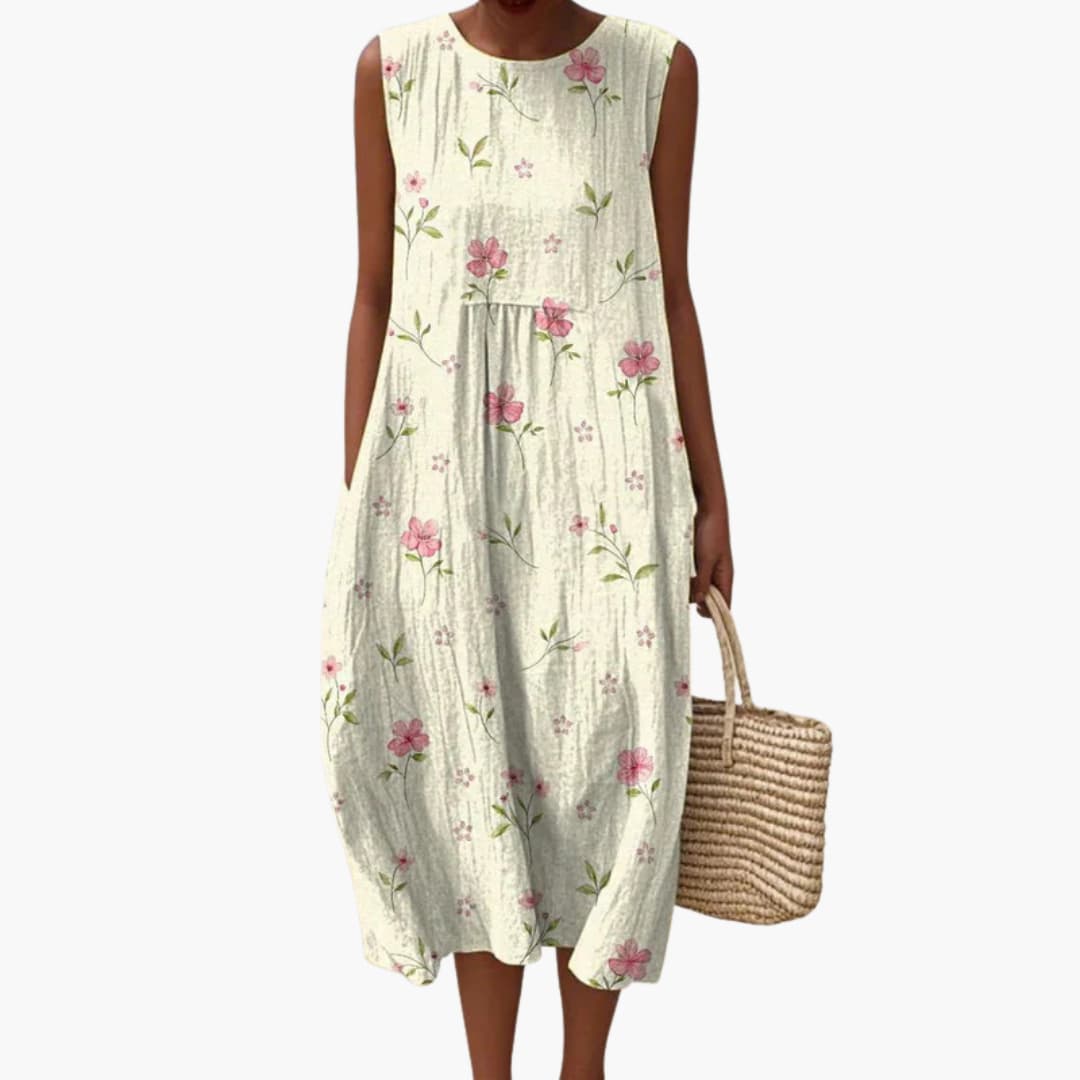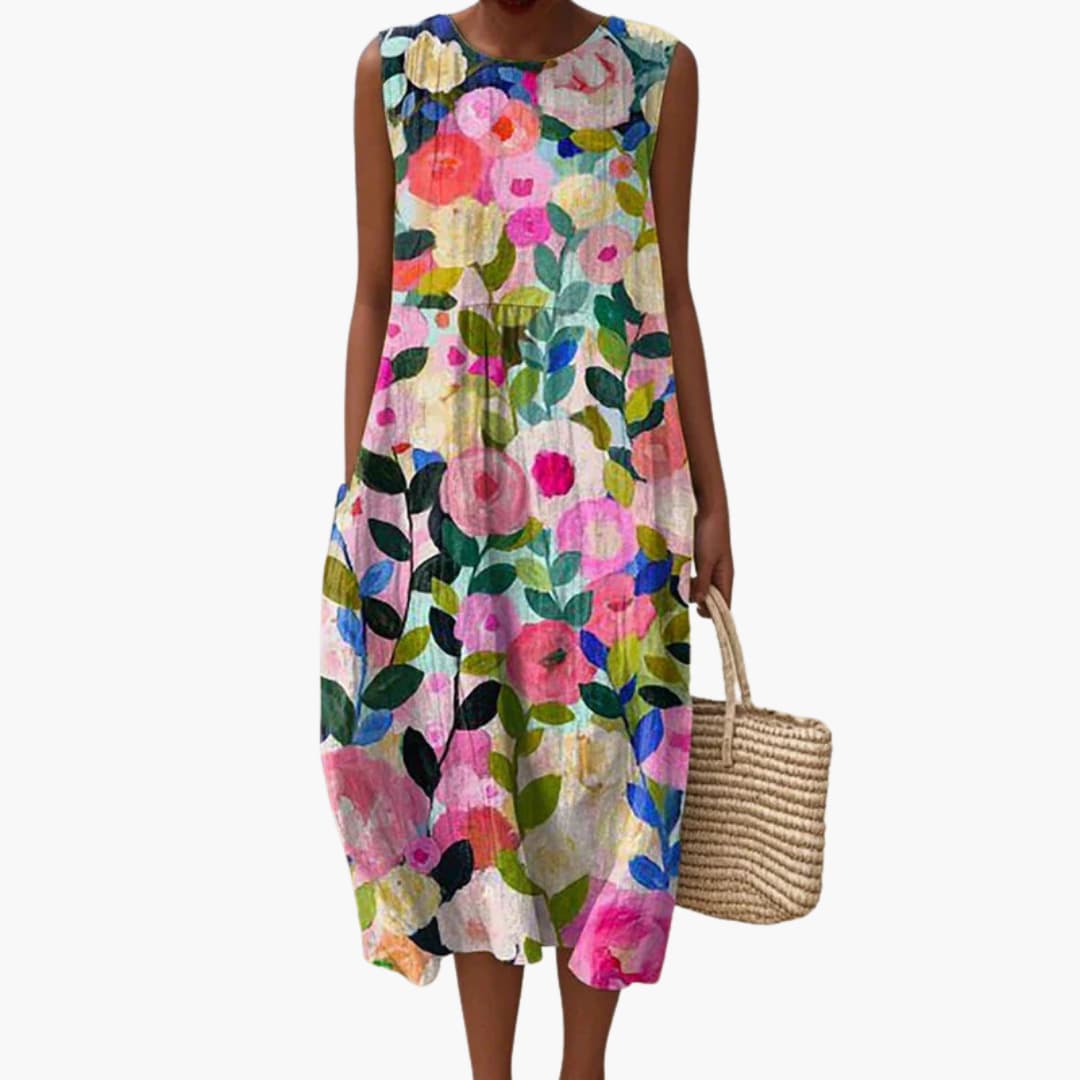 Women’s sleeveless midi dress with floral print and pockets