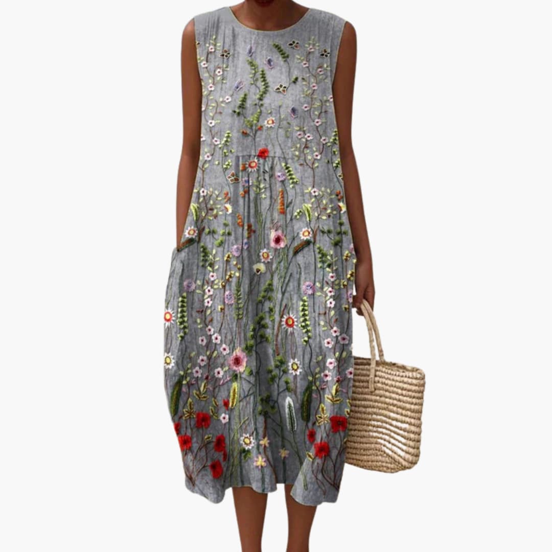 Women’s sleeveless midi dress with floral embroidery detail