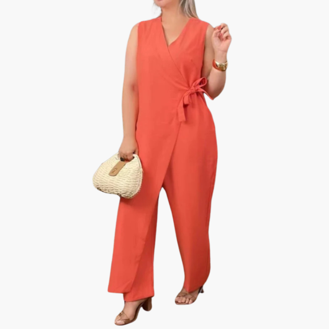 Wrap Jumpsuit for Women - Sleeveless Wide Leg Tie Waist