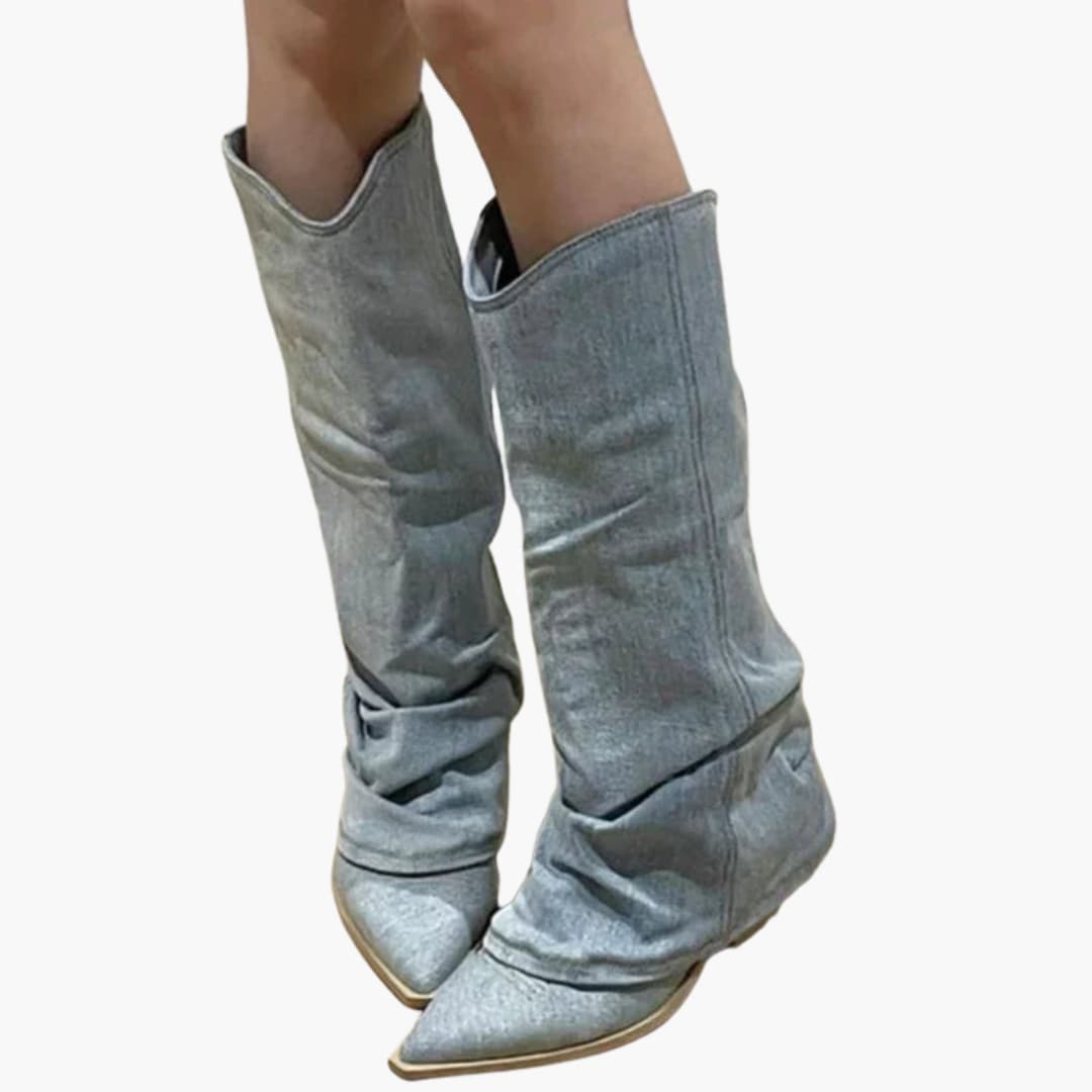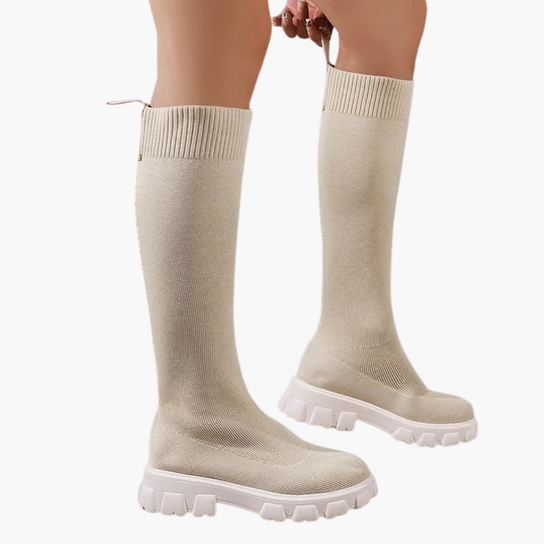 Women’s winter knee-high boots with stretch knit and round toe