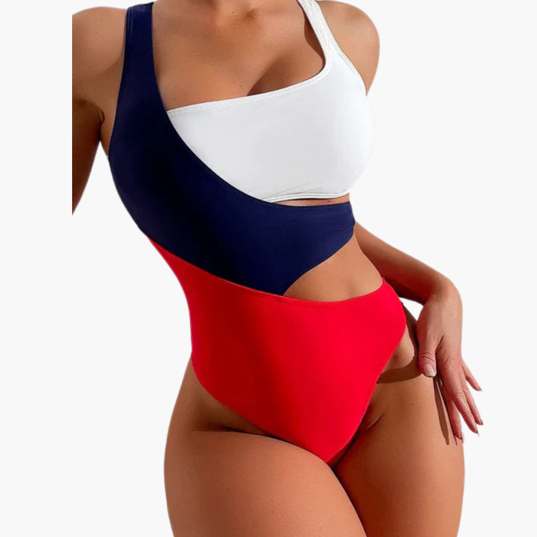 Asymmetric One Piece Swimsuit - Women’s Colour Block Style
